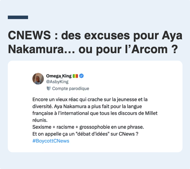 Sur CNEWS, Richard Millet attaque Aya Nakamura. Les propos sont racistes, misogynes et grossophobes.