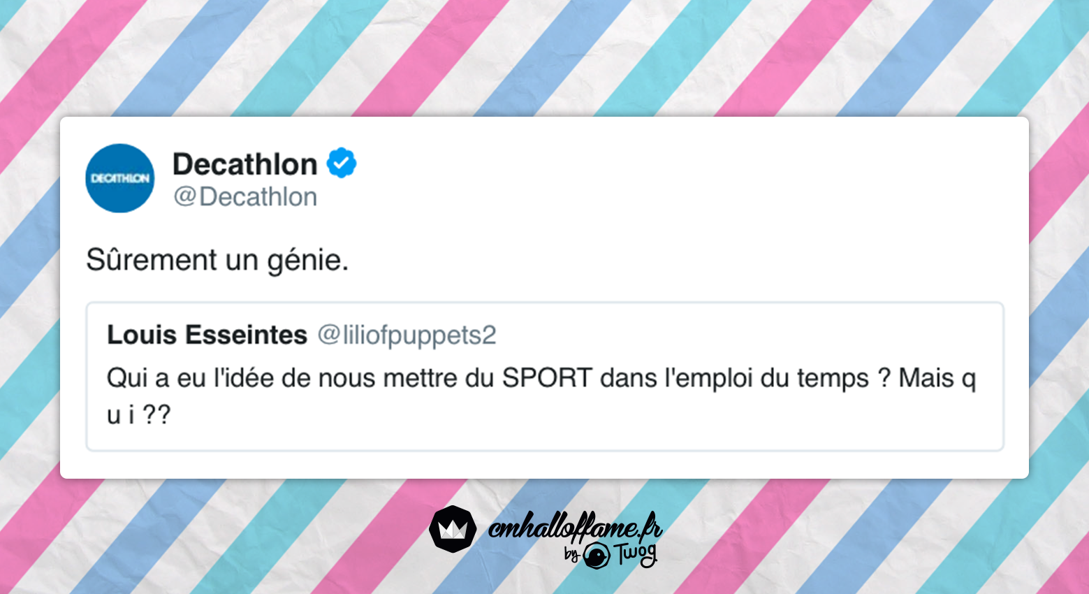 Quand Twitter s’amuse à faire des blagues au CM de Décathlon, voici sa réaction :